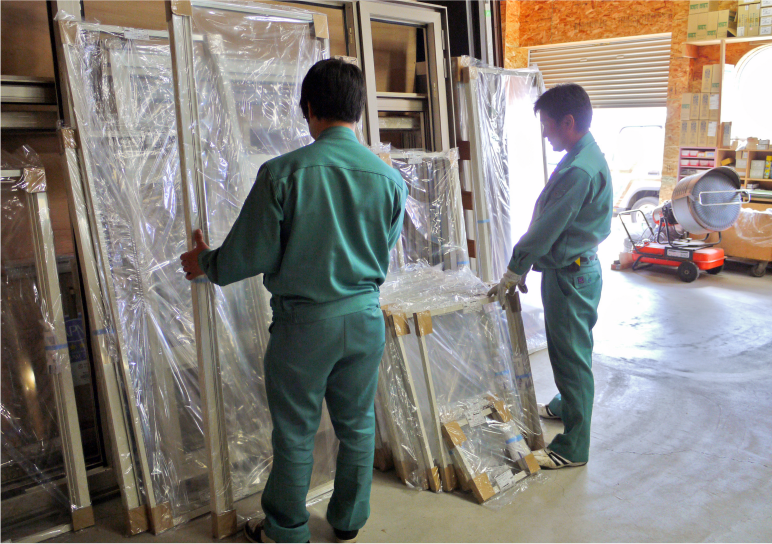 サッシの種類は木製やスチール製のものが多くありましたが、近年は樹脂製が主となり、木製、アルミ製のものが次いで使用されています。建物の違いによっても変わり多種多様です。建物の構造、用途により、取り付けるサッシも変わります。付随するもの、ガラスや網戸などを理解し、把握した上で作成から施工までをいたします。エクステリアの面でも、お住いの空間を彩るものとしても重要な部分でもあります。お客さまとともにより良いものに仕上げます。